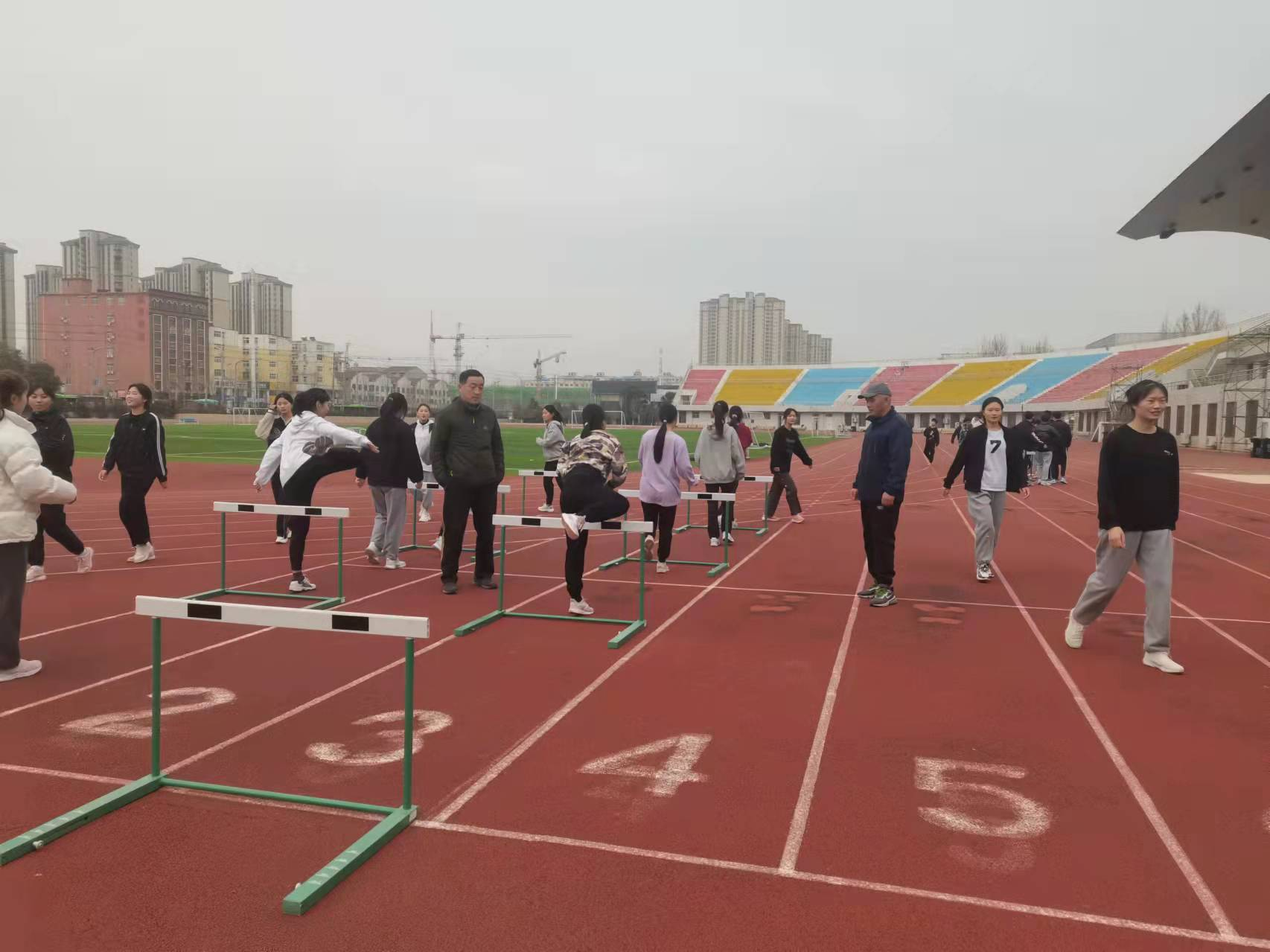 教研室全体成员围绕当今跨栏跑技术教学方法、训练方法及课堂上的安全问题等内容进行了介绍与交流。根据各位教师对跨栏跑技术教学的创新建议,由贾绍峰老师进行跨栏跑技术教学的实地展示。其余田径教师进行了观摩和点评,并表示要持续做好田径教学其它项目创新工作。